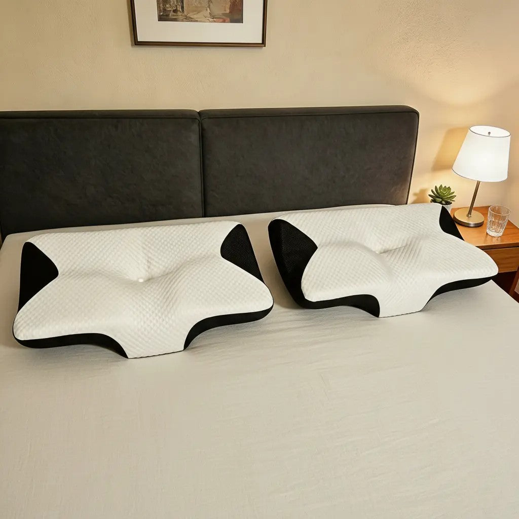 Forme ondulée avec creux central pour accompagner naturellement la tête et la nuque.Deux hauteurs latérales permettent de choisir le côté le plus confortable selon votre position de sommeil.